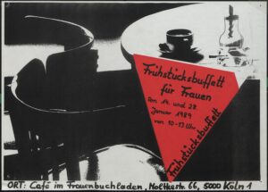 Nach dem Aufbau von Frauenzentren waren in den 70er Jahren Frauennotruf, Frauenhäuser, Frauenbuchläden und -cafés die ersten Projekte, die Feminist innen gründeten. In Köln eröffnete die Betriebswirtin Gisela Koschig-Gehm zusammen mit Ulla Böll – später abgelöst durch Annette Ahaus – am 22. Januar 1977 in der Engelbert Straße das erste Frauenbuchladencafé. Mit einem zum Teil geliehenen Startkapital von 20.000 DM für Kaution, Renovierung, Miete, Einrichtung und ersten Bestellungen wollten sie einen Treffpunkt für Frauen schaffen.
