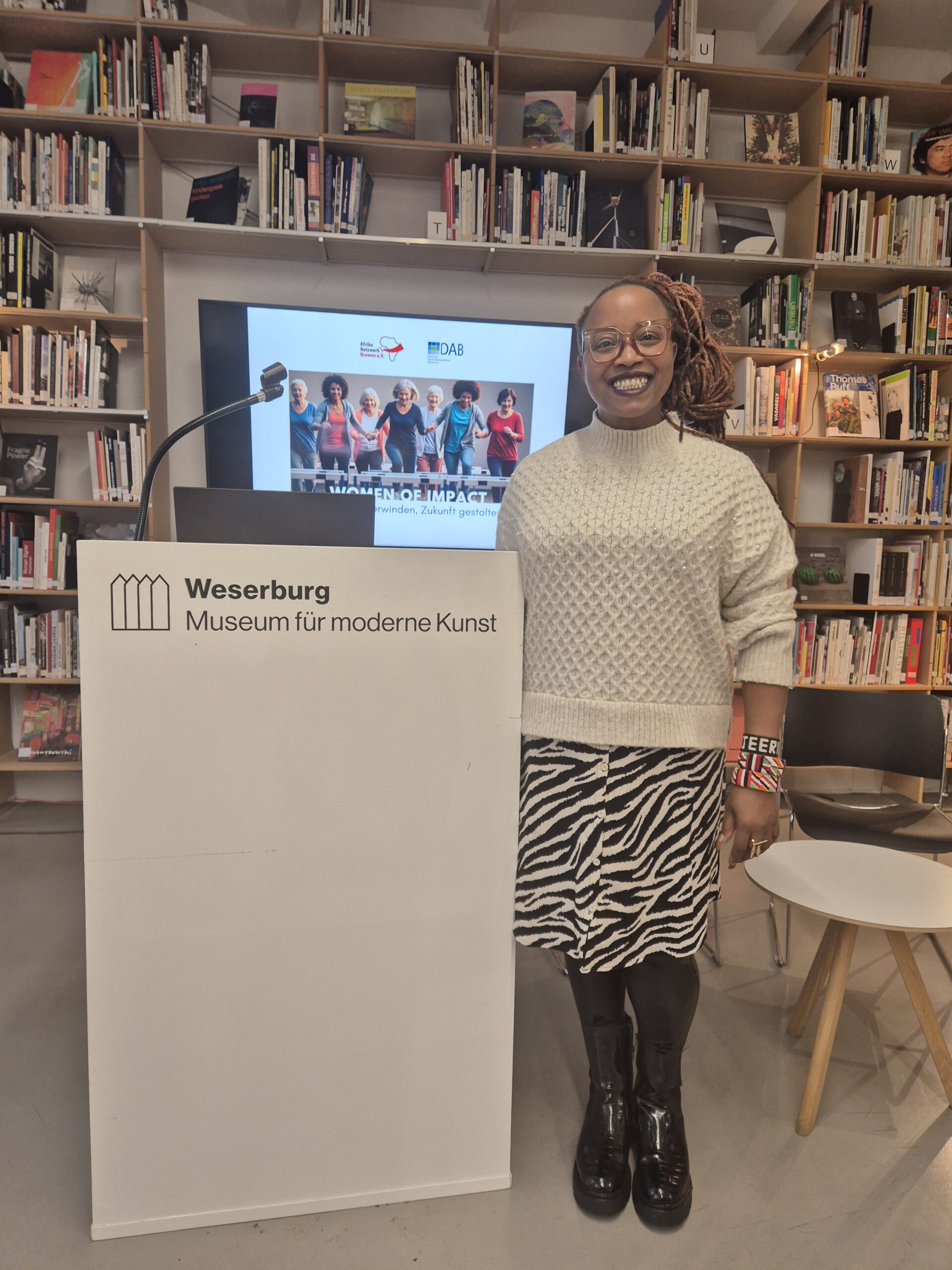 Auch im Bereich Klimagerechtigkeit ist Njeri seit vielen Jahren aktiv, die Klimapolitik aus einer dekolonialen Perspektive zu denken. Sie macht darauf aufmerksam, dass aktuelle Debatten über Klimawandel, Nachhaltigkeit und Transformation häufig von Perspektiven dominiert werden, die koloniale Machtverhältnisse und historisch gewachsene Ungleichheiten ausblenden. Vor diesem Hintergrund setzt sie sich dafür ein, klima- und umweltpolitische Diskurse konsequent mit indigenen Wissenssystemen und den Erfahrungen von Communities im Globalen Süden zu verbinden. In Vorträgen und öffentlichen Diskussionen hebt sie die Bedeutung der Umweltaktivistin und Nobelpreisträgerin Prof.in Wangari Maathai und zeigt auf, wie deren Verbindung von ökologischer Praxis, feministischer Politik und Community-basierter Wissensproduktion wichtige Impulse für gegenwärtige Klima- und Transformationsdebatten in Deutschland und Europa liefert.